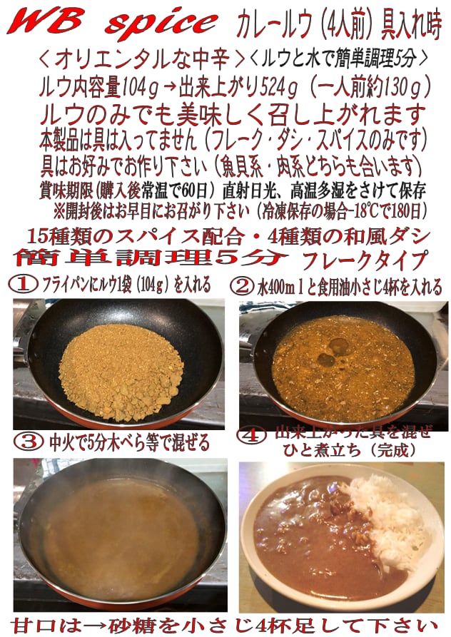 ◆ルウ内容量104g→出来上がり524g(一人前約130g)